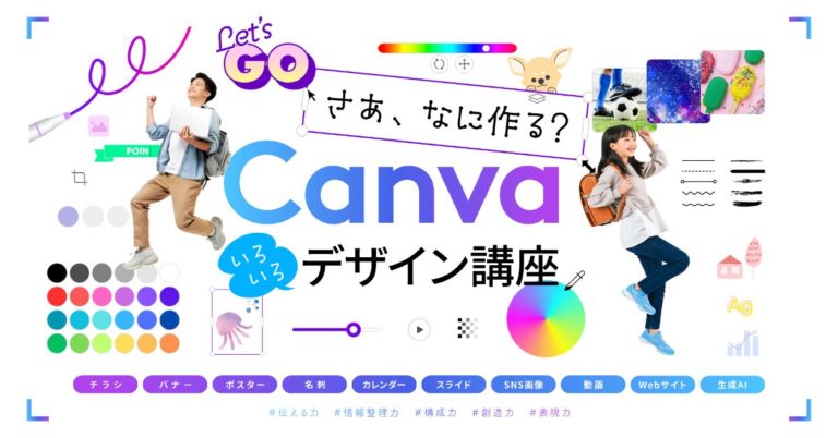だれでも・気軽に・美しく。伝える力を手に入れる。 今、国内外の学校・企業・行政で広く使われているデザインツール Canva(キャンバ)。 専門知識がなくても、写真・文字・素材を組み合わせるだけで、誰でもプロのようなデザインが作れます。 本講座では、中高生から大人まで、初心者の方でも“伝える力”が楽しく身につくカリキュラムを用意しています。