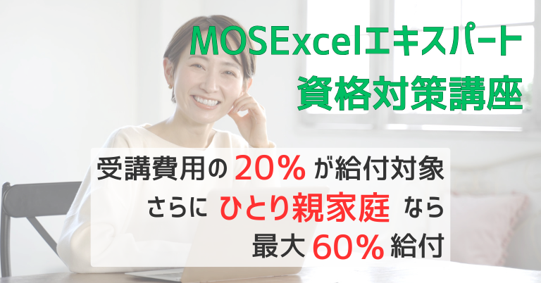 給付金でお得にスキルアップ。再就職・キャリアアップを本気で目指す方へ 「Excelを仕事で使えるようになりたい」・ 「資格を取って就職・転職に活かしたい」 そんな方のための、資格対策講座です。 当教室では、初心者の方でも段階的に理解できるカリキュラムで、 合格に必要なスキルをしっかり身につけていきます。
