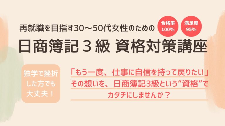 初めての方でも合格をしっかりサポートします 初心者や数字が苦手な方でもゼロから無理なく学べる安心のカリキュラムです。仕訳や試算表など基礎から丁寧に指導し、自分のペースで合格を目指せます。再就職・転職、事務職へのスキルアップや自営業の方にも役立つ人気講座です。